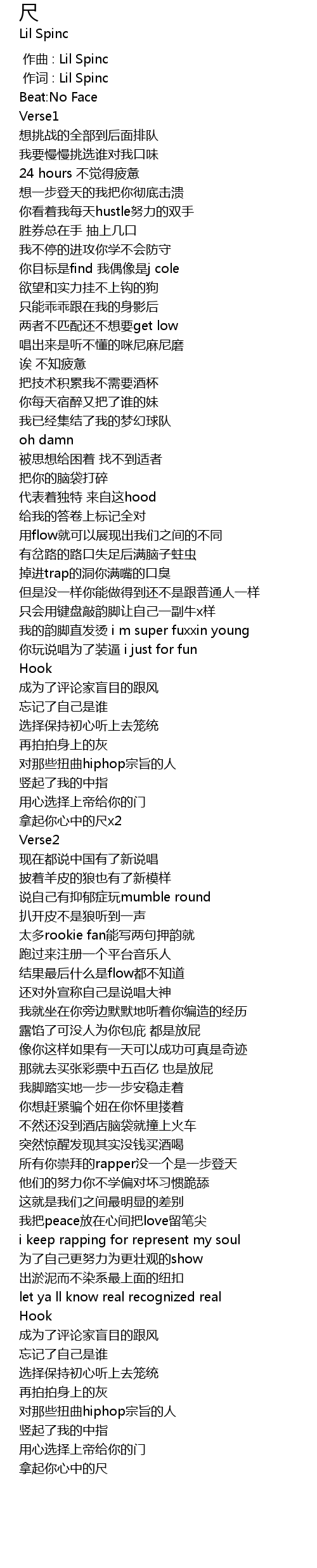 | [00:01.000] | 作词 : Lil Spinc |