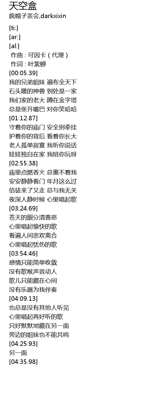 | [00:01.000] | 作词 : 叶紫蝉 |