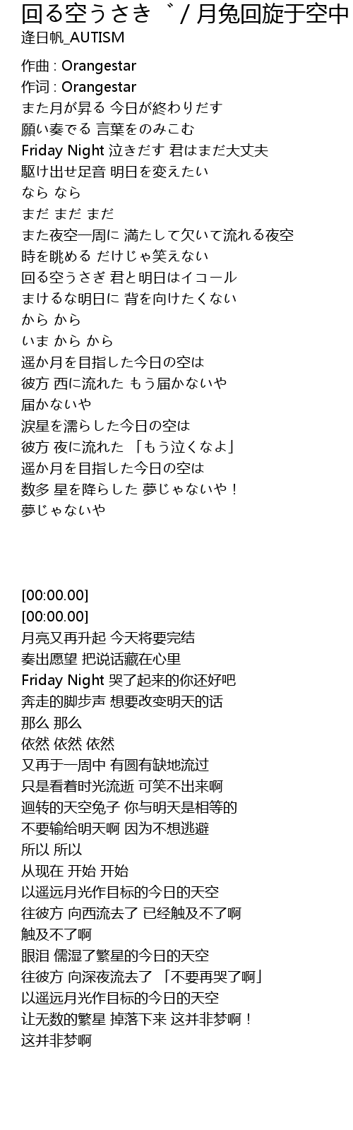| [00:00.00] | 作词 : Orangestar |