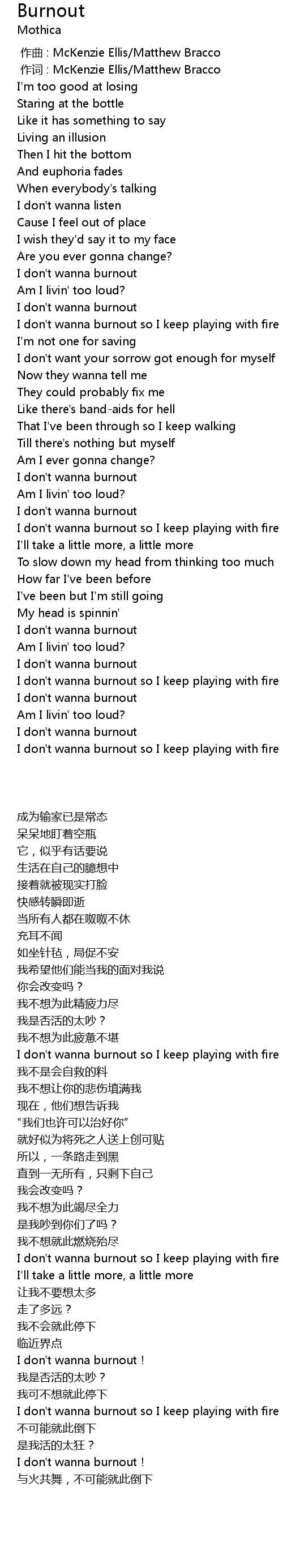 | [00:58.00] | I don' t wanna burnout so I keep playing with fire |