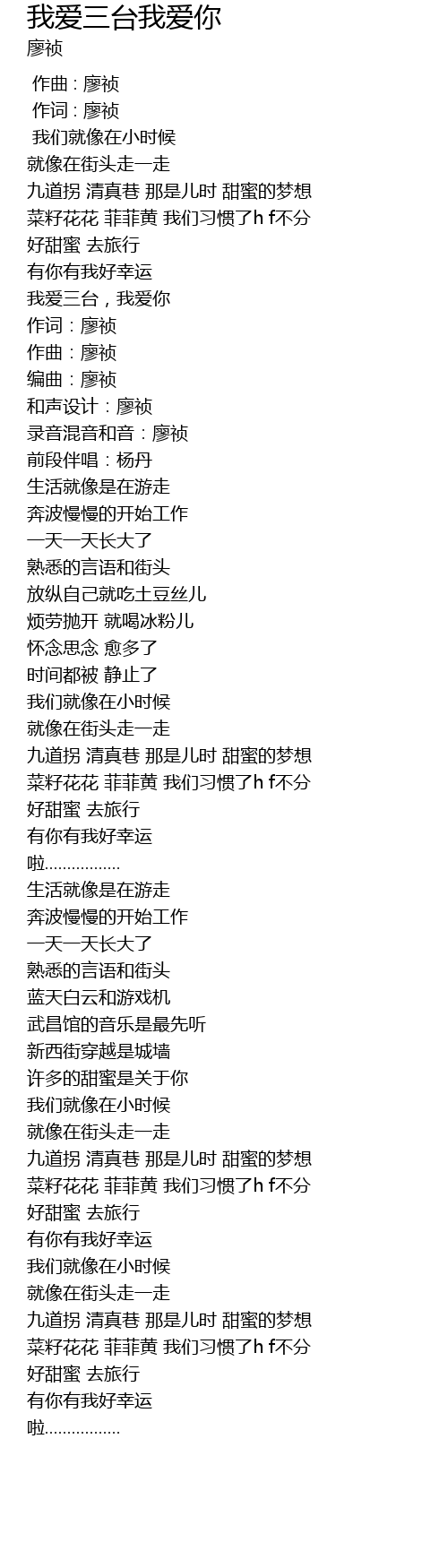 | [00:57.52] | 作词:廖祯 |