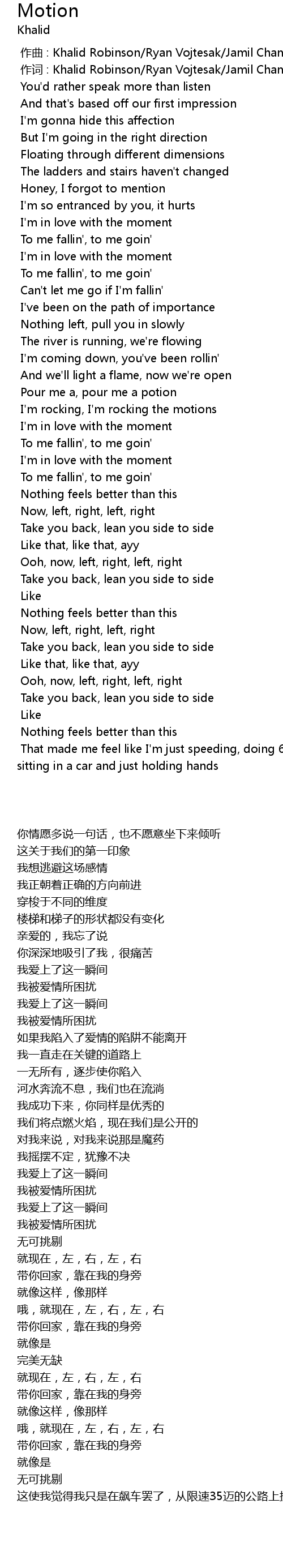 | [00:00.000] | zuò qǔ : Khalid Robinson Ryan Vojtesak Jamil Chammas |