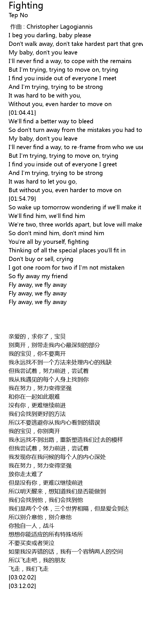 | [03:12.02] | Fly away, we fly away |