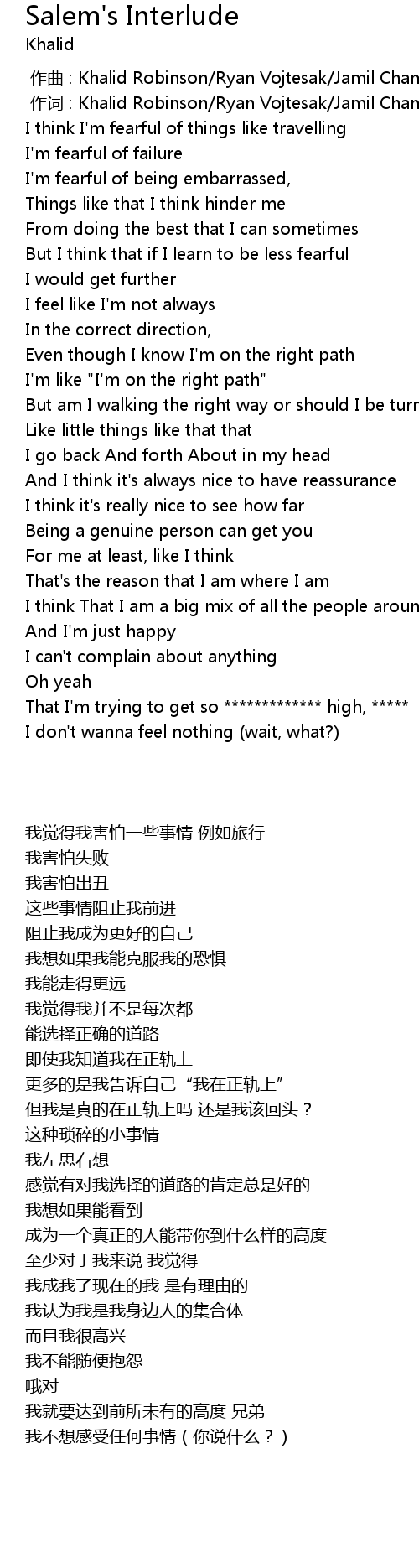 | [00:00.000] | zuo qu : Khalid Robinson Ryan Vojtesak Jamil Chammas |