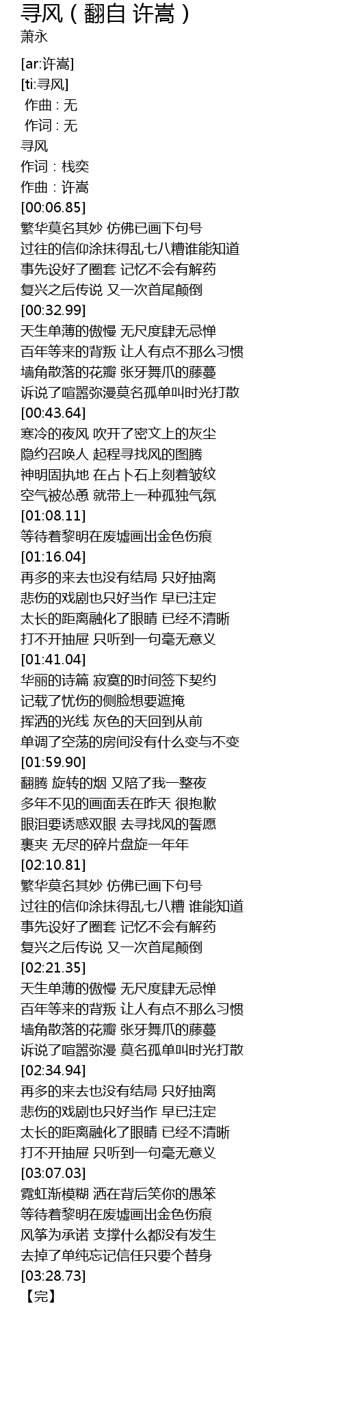 | [02:05.73] | yan lei yao you huo shuang yan qu xun zhao feng de shi yuan |