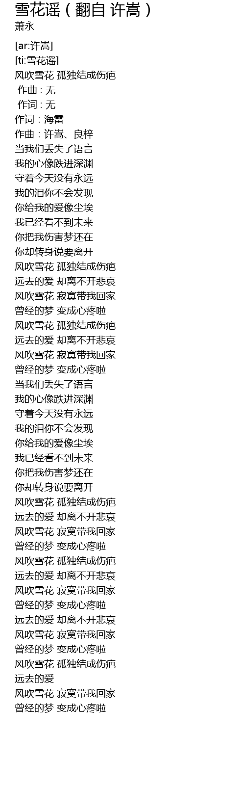 | [03:16.**] | 风吹雪花 孤独结成伤疤 |