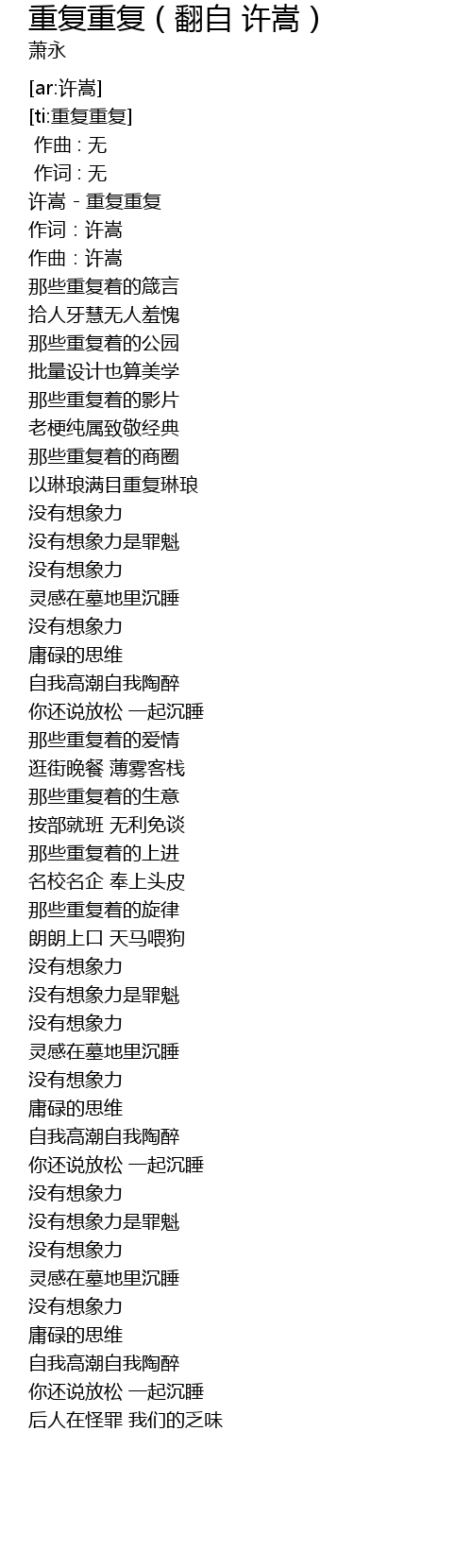 | [00:00.09] | 许嵩 - 重复重复 |