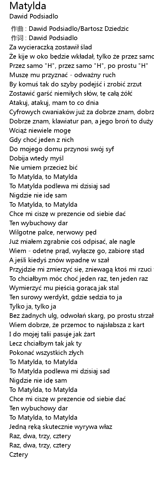| [04:02.91] | To Matylda, to Matylda |
