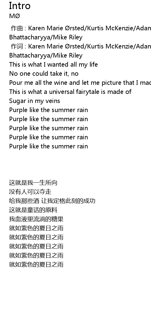 | [00:41.28] | Purple like the summer rain |