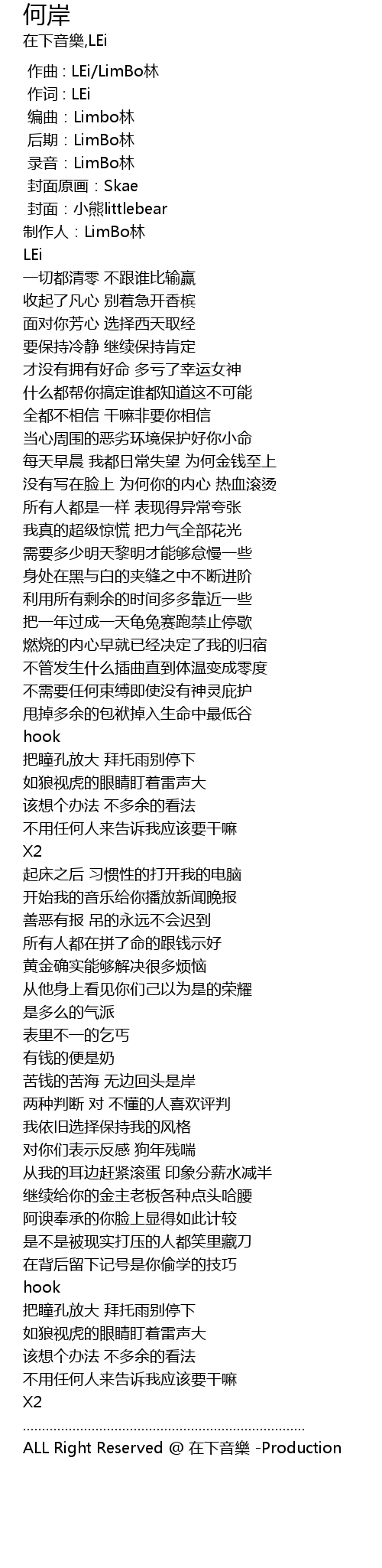 | [03:05.38] | ALL Right Reserved @ 在下音樂 -Production |