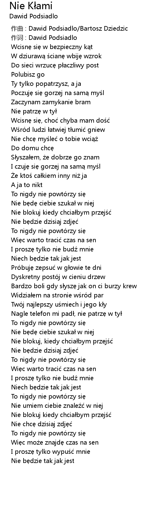 | [00:01.000] | zuò cí : Dawid Podsiadlo |
