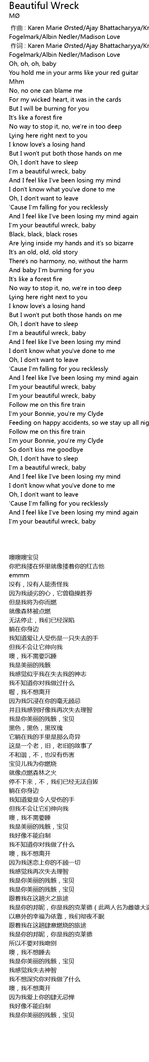 | [02:28.01] | I' m your beautiful wreck, baby |