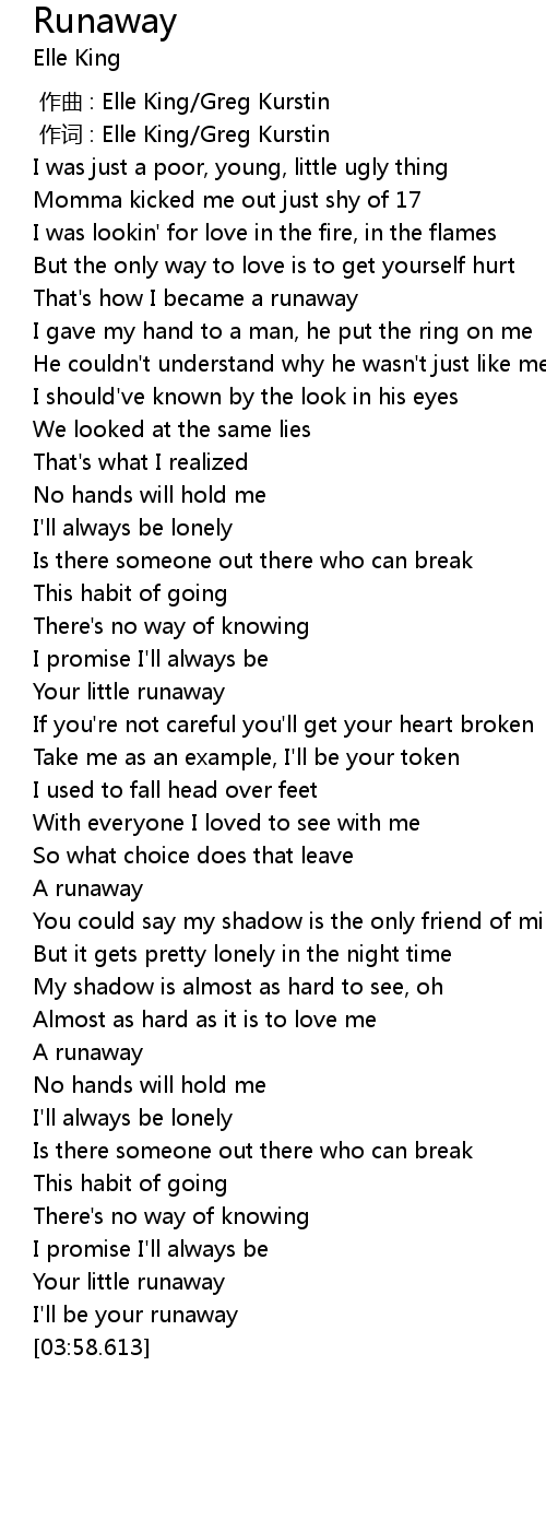 | [00:01.000] | zuo ci : Elle King Greg Kurstin |