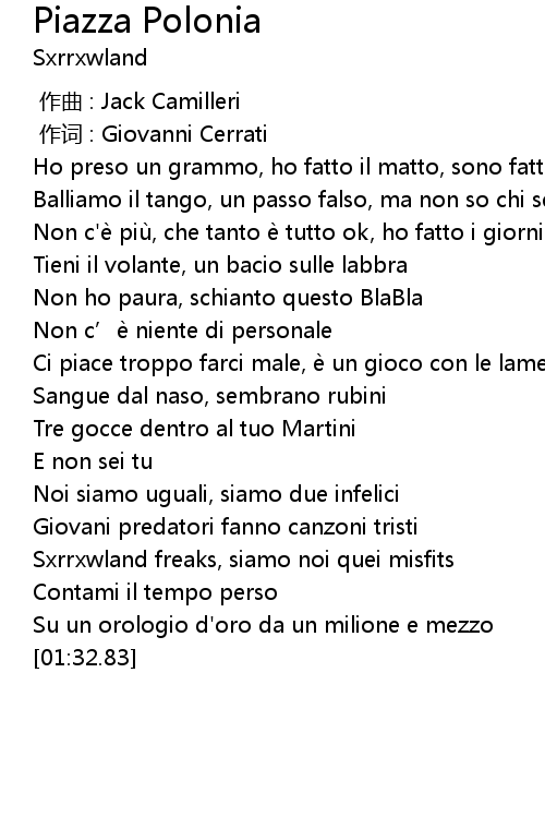 | [01:15.43] | Giovani predatori fanno canzoni tristi |