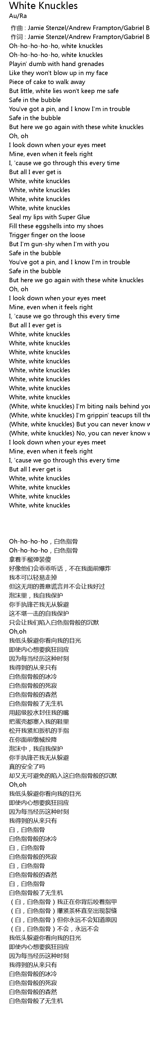| [00:03.93] | Ohhohohoho, white knuckles |