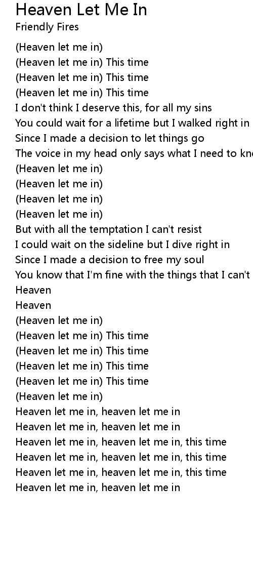 Heaven let me in, heaven let me in |