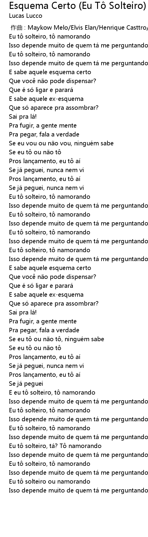 | [02:12.44] | Eu tô solteiro, tá? Tô namorando |