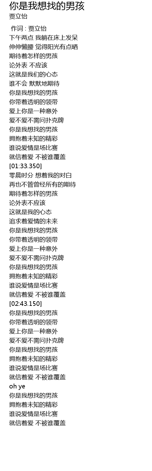 | [03:34.930] | nǐ shì wǒ xiǎng zhǎo de nán hái |