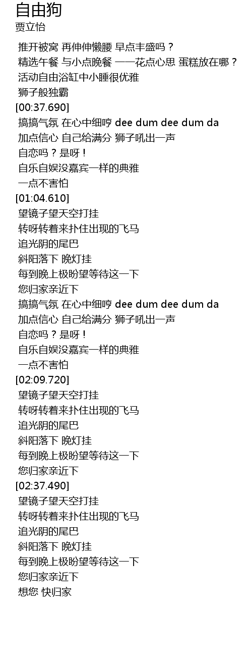 | [00:40.790] | 搞搞气氛 在心中细哼 dee dum dee dum da |