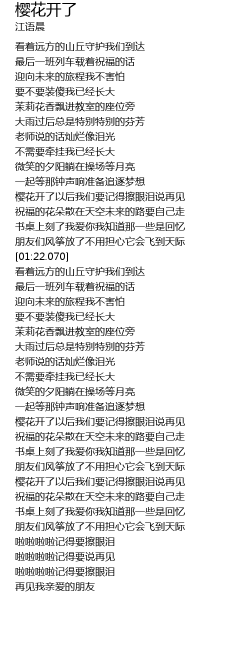 | [00:59.530] | 樱花开了以后我们要记得擦眼泪说再见 |