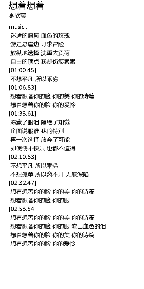 | [02:33.31] | 想着想著你的脸 你的美 你的诗篇 |