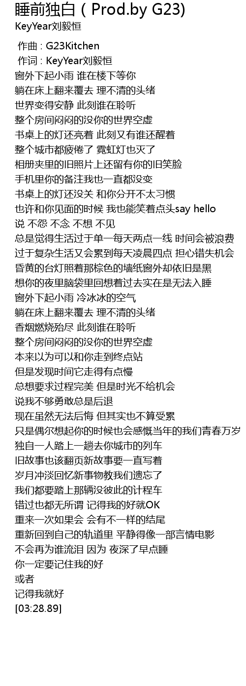 | [00:01.000] | 作词 : KeyYear刘毅恒 |