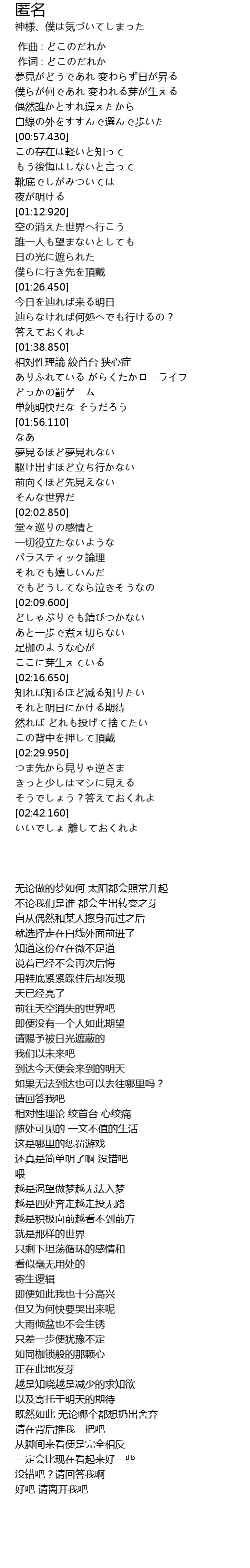 | [00:37.420] | 僕らが何であれ 変われる芽が生える |