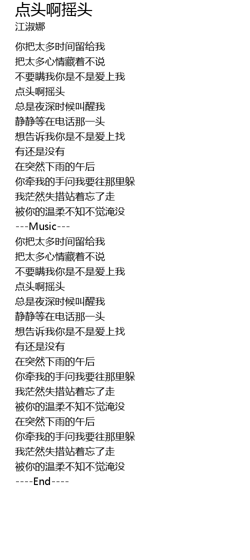 | [00:43.13] | diǎn tóu a yáo tóu |