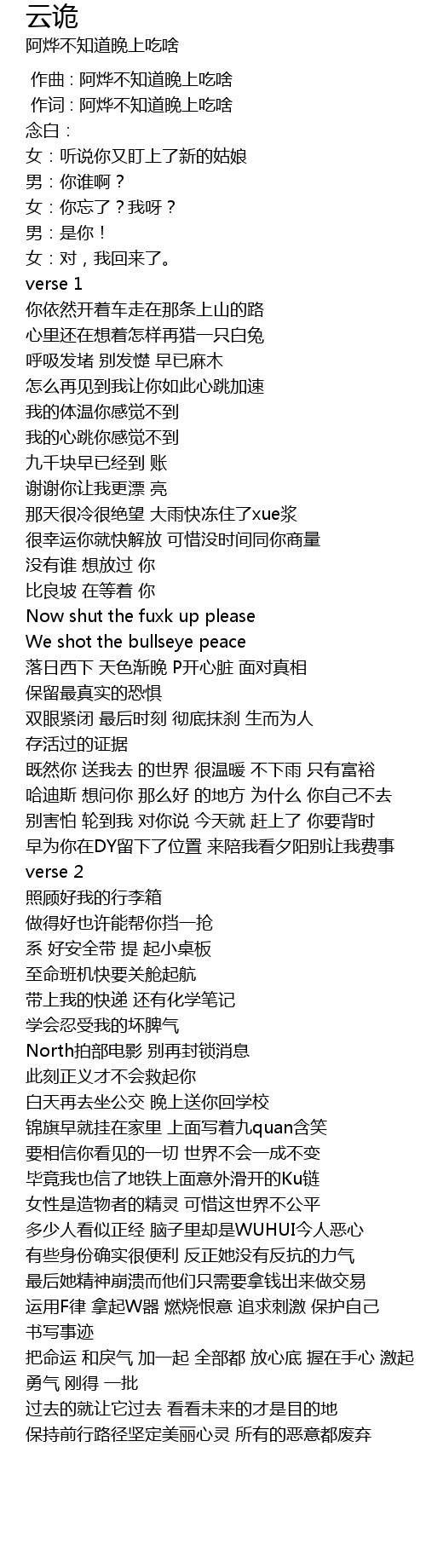 | [00:00.168] | 作词 : 阿烨不知道晚上吃啥 |