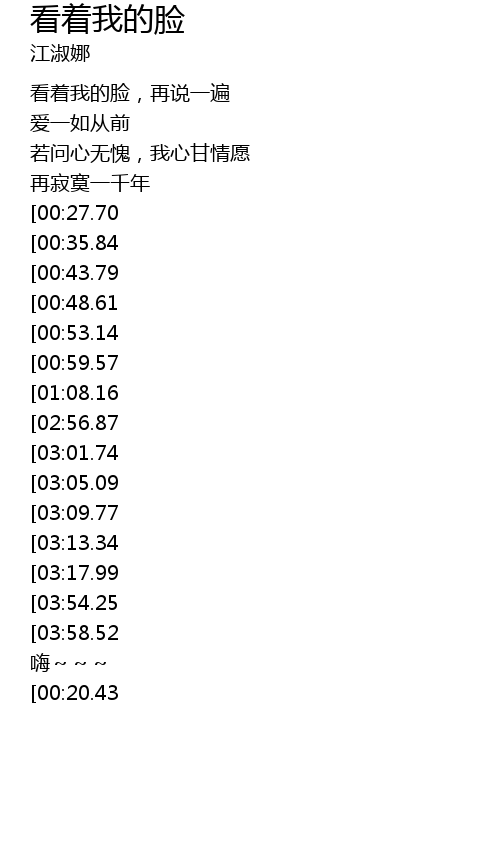 | [03:29.81][02:56.87][01:17.12] | 看着我的脸,再说一遍 |