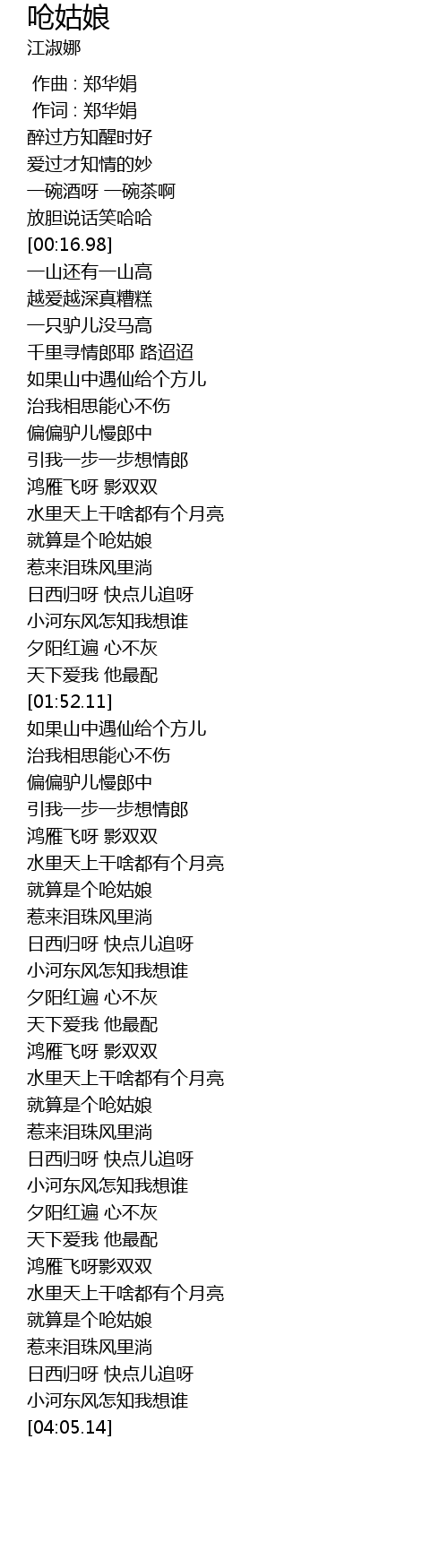 | [03:49.48] | jiù suàn shì gè qiāng gū niáng |