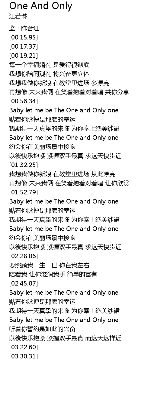 | [00:57.96] | Baby let me be The One and Only one |