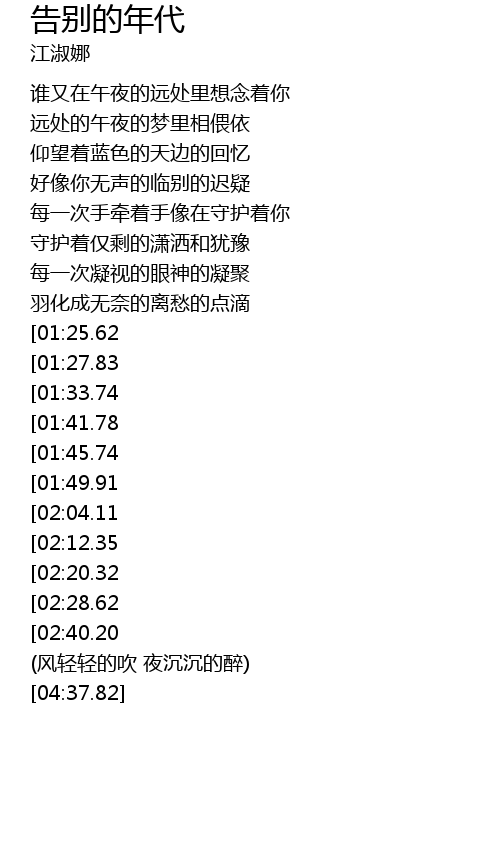 | [03:09.53][01:41.78] | 告别的年代 分开的理由 |