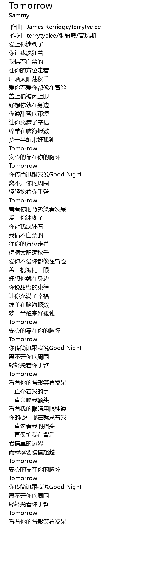 | [00:00.000] | 作曲 : James Kerridge/terrytyelee |