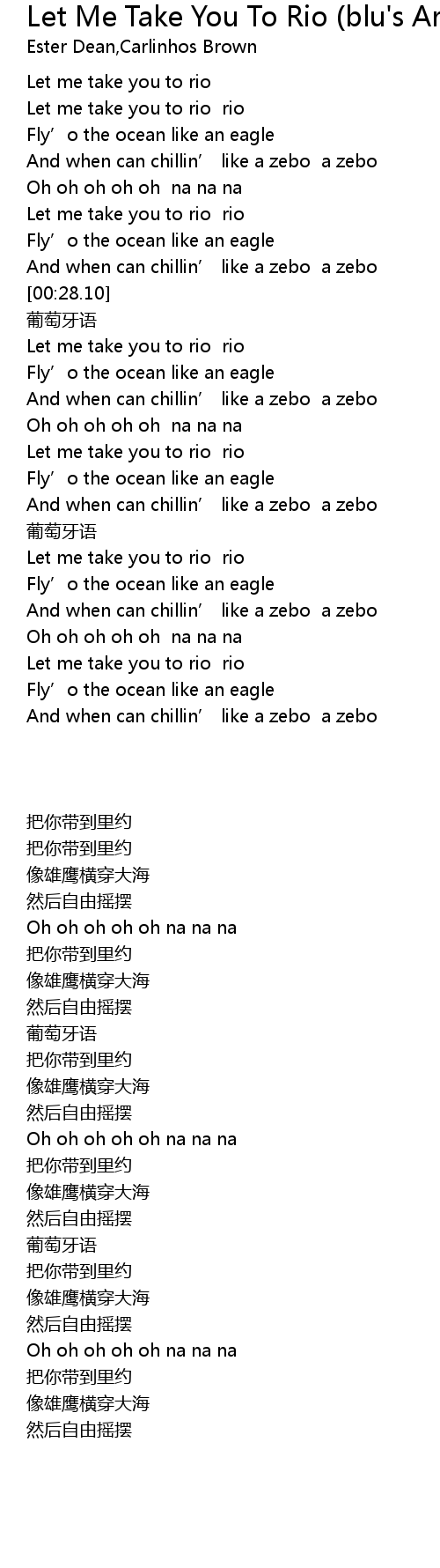 | [00:49.89] | Let me take you to rio rio |