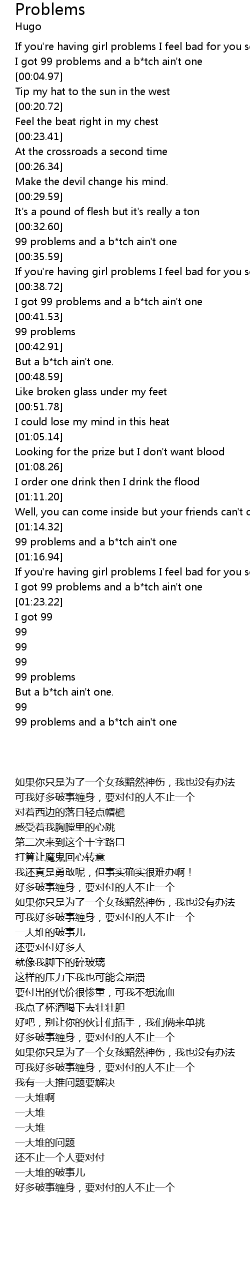99 problems and a b*tch ain't one |