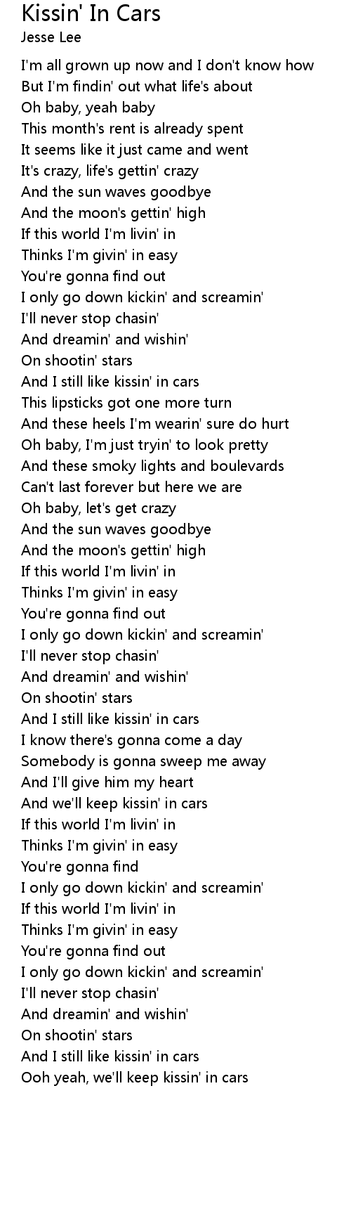 And we'll keep kissin' in cars |