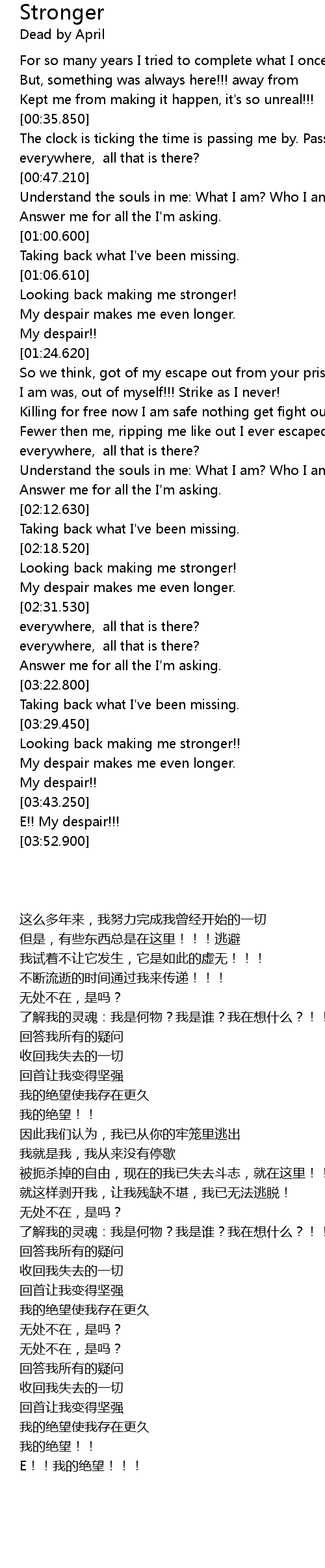 | [03:30.900] | Looking back making me stronger!! |