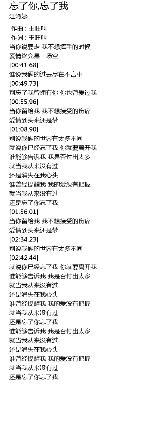 | [01:48.28] | hái shì wàng le nǐ wàng le wǒ |