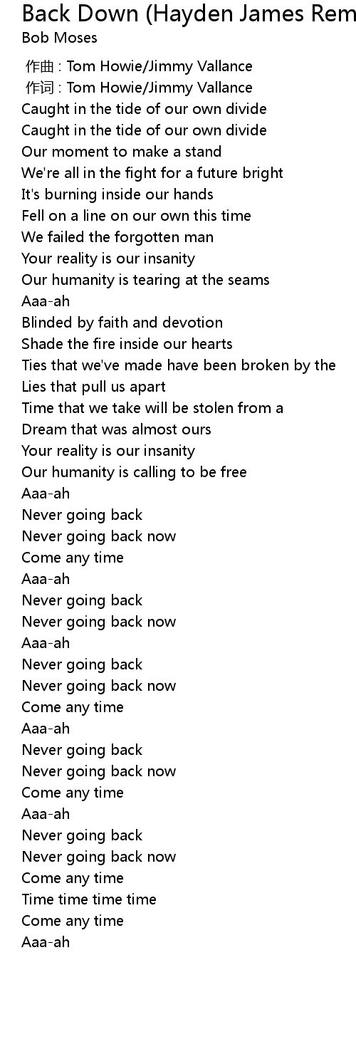 | Song | Back Down (Hayden James Remix (Edit)) |