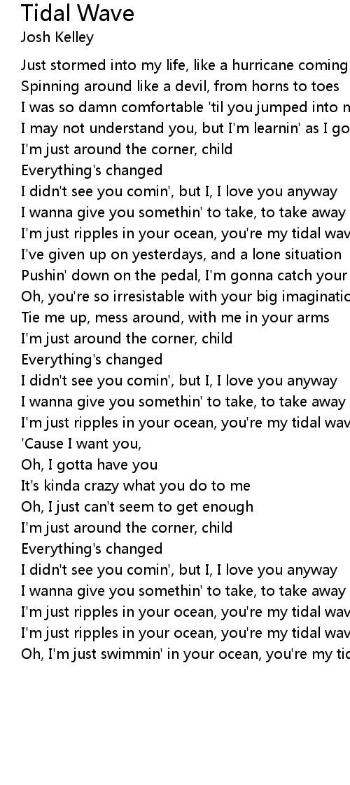 Oh, I'm just swimmin' in your ocean, you're my tidal wave |
