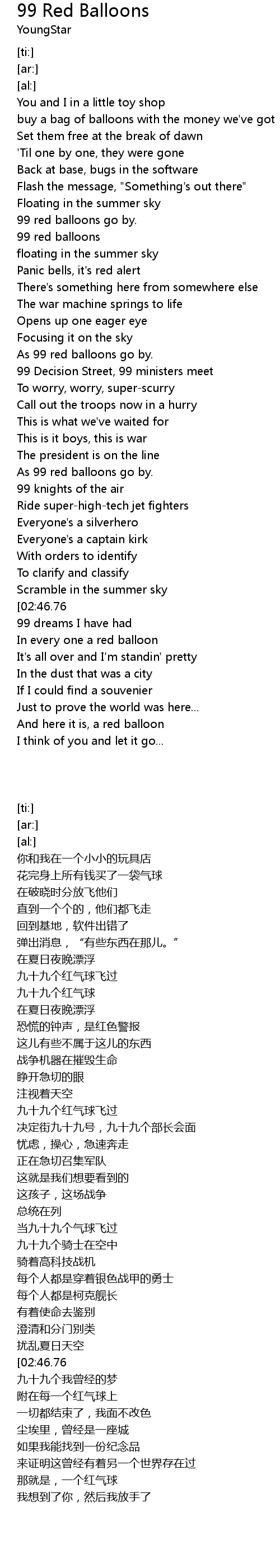 99 red balloons go by. |
