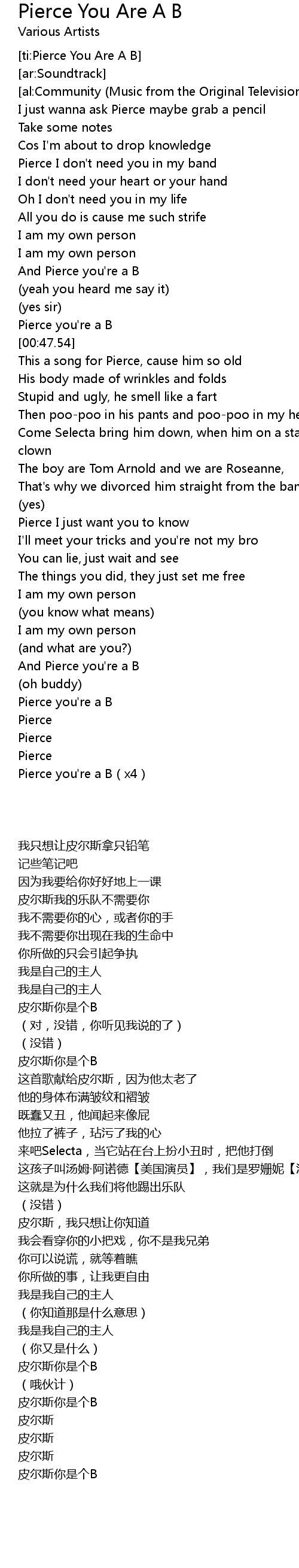 | [00:48.44] | This a song for Pierce, cause him so old |
