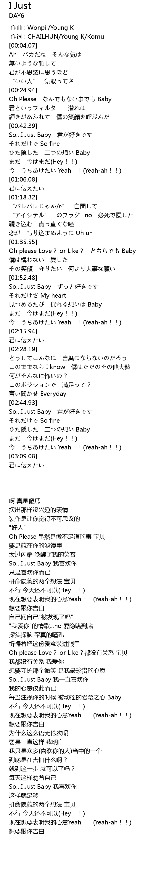 | [00:01.000] | 作词 : CHAILHUN/Young K/Komu |