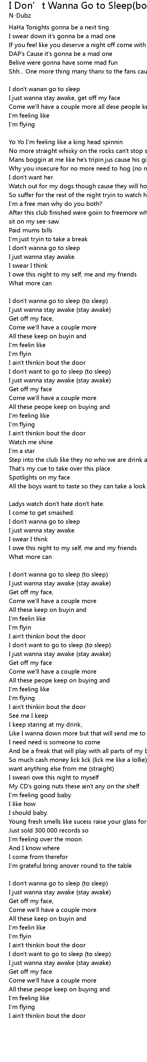 I don't wanan go to sleep |