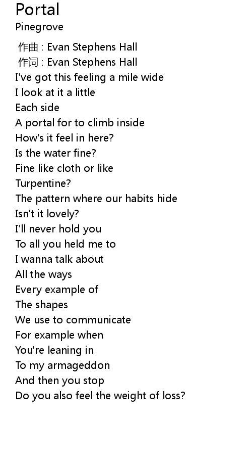| [00:25.70] | A portal for to climb inside |