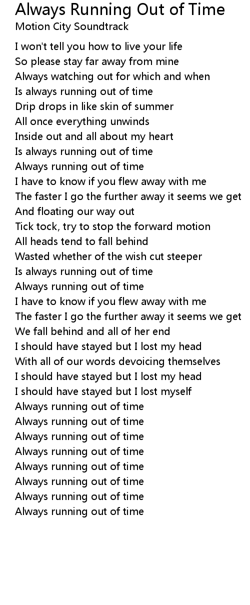 Always Running Out of Time Lyrics