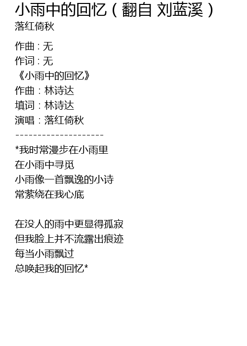 | wǒ shí cháng màn bù zài xiǎo yǔ lǐ | |