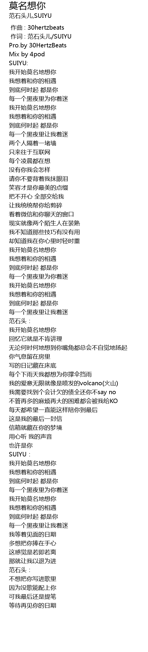 | [01:42.14] | wǒ kāi shǐ mò míng dì xiǎng nǐ |