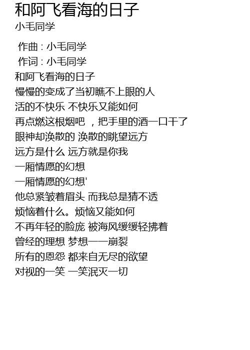 | [00:10.676] | hé ā fēi kàn hǎi de rì zi |